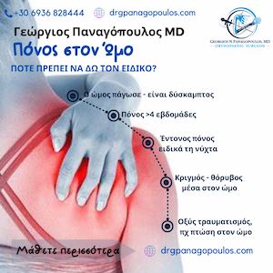 Ο πόνος στον ώμο μπορεί να επηρεάσει σημαντικά τις καθημερινές δραστηριότητες και την ποιότητα ζωής. Είναι σημαντικό να αναζητήσετε ιατρική βοήθεια εάν ο πόνος στον ώμο επιμένει ή επιδεινώνεται παρά τα συντηρητικά μέτρα. Ένας ειδικός ορθοπεδικός μπορεί να παράσχει ακριβή διάγνωση και να αναπτύξει ένα κατάλληλο σχέδιο θεραπείας για την αντιμετώπιση της υποκείμενης αιτίας του πόνου.